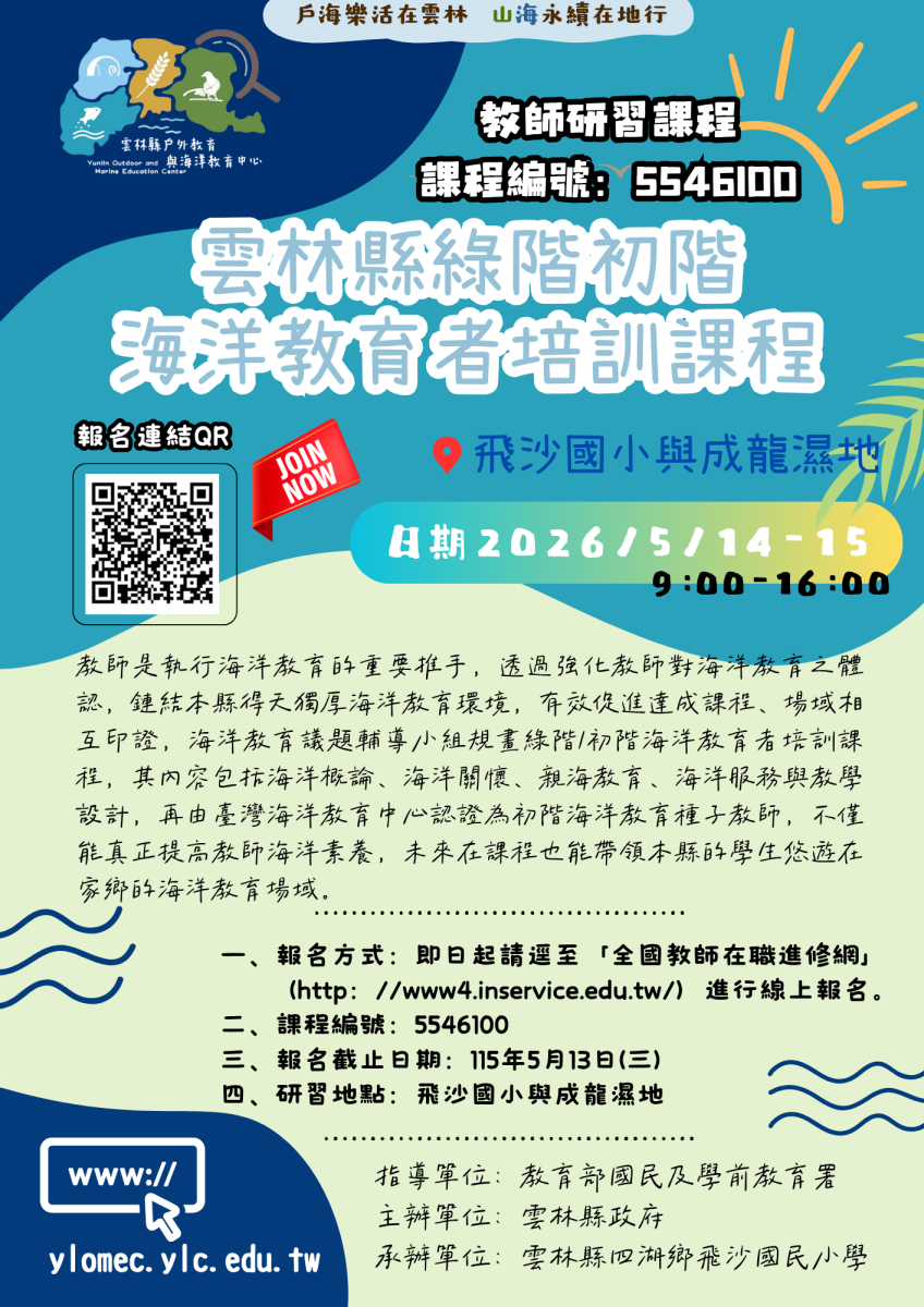 雲林縣綠階初階海洋教育者培訓課程 歡迎老師加入戶海教育的行列